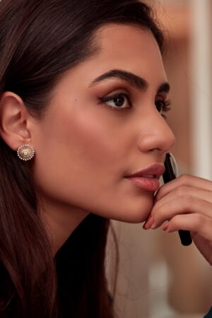 - Statement earrings that highlight the natural volume
